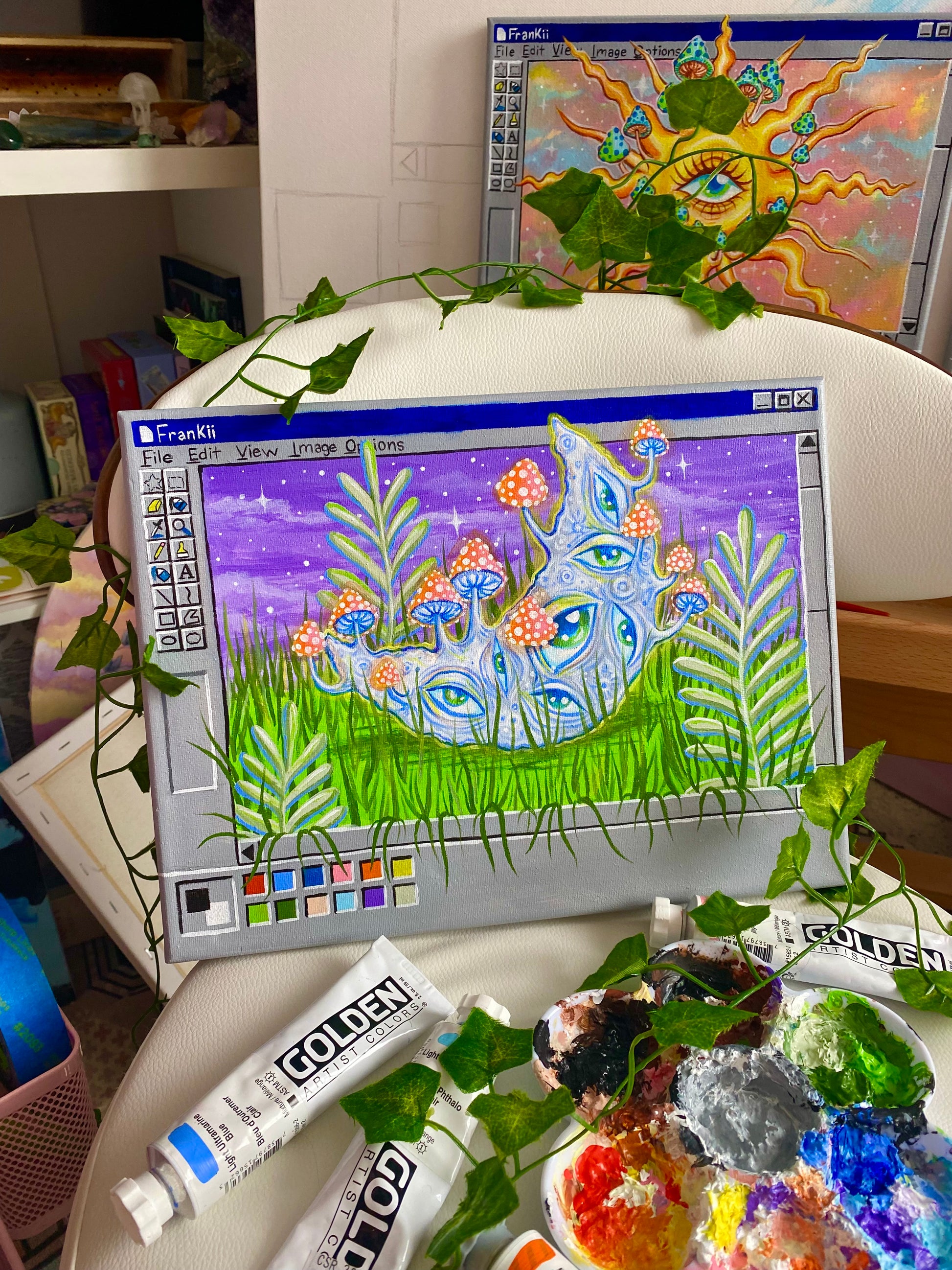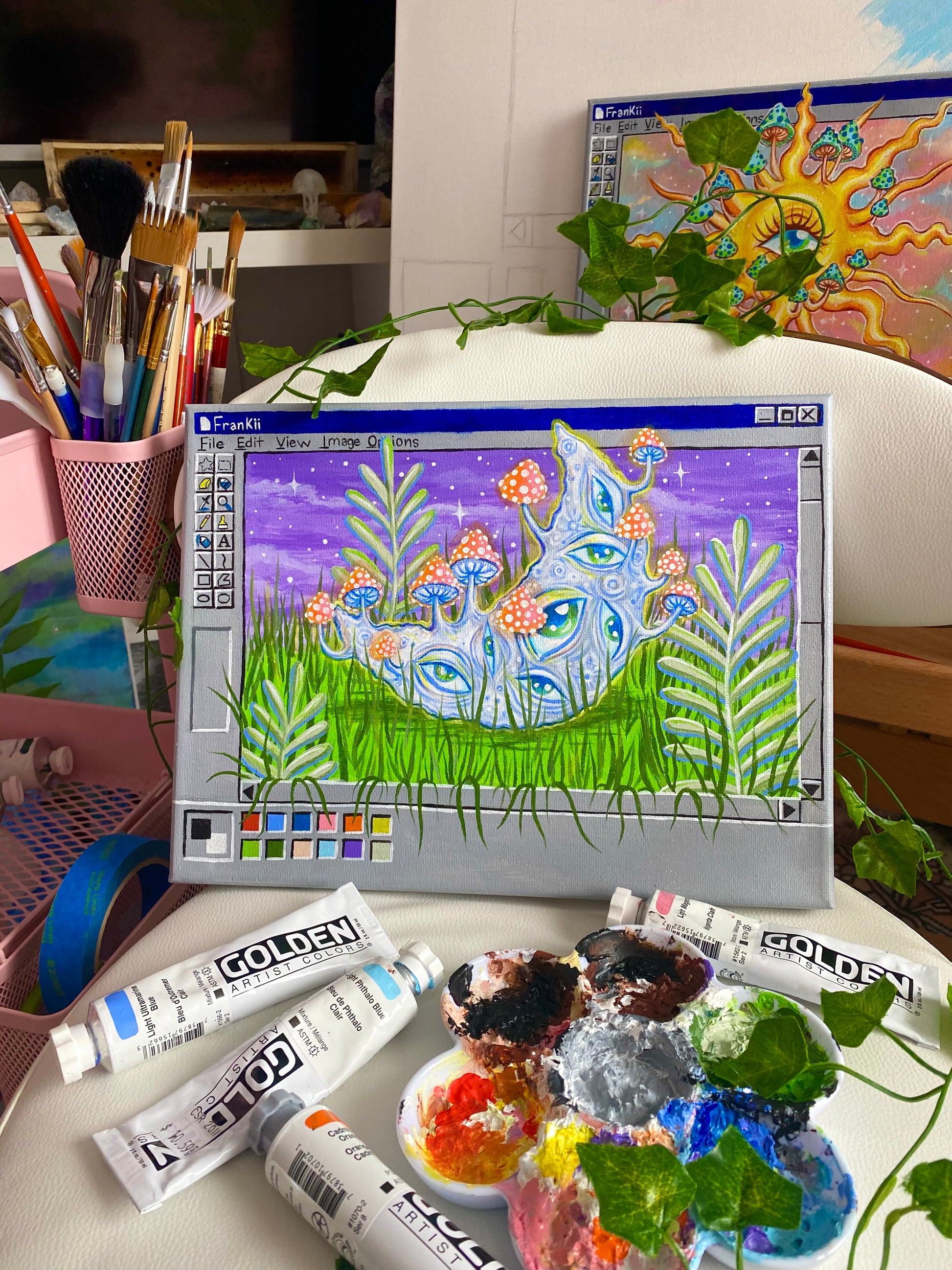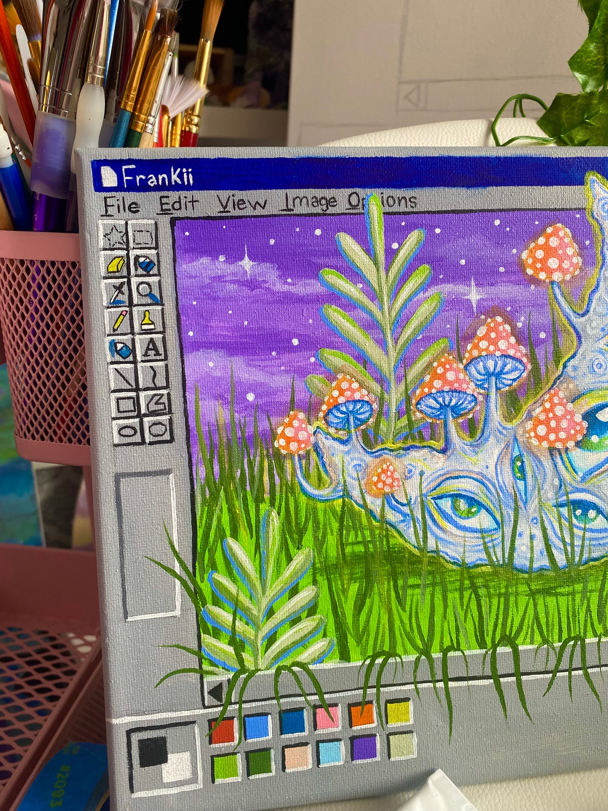 Original Trippy Moon Paintbox Painting 🌙🎨🌿💗✨